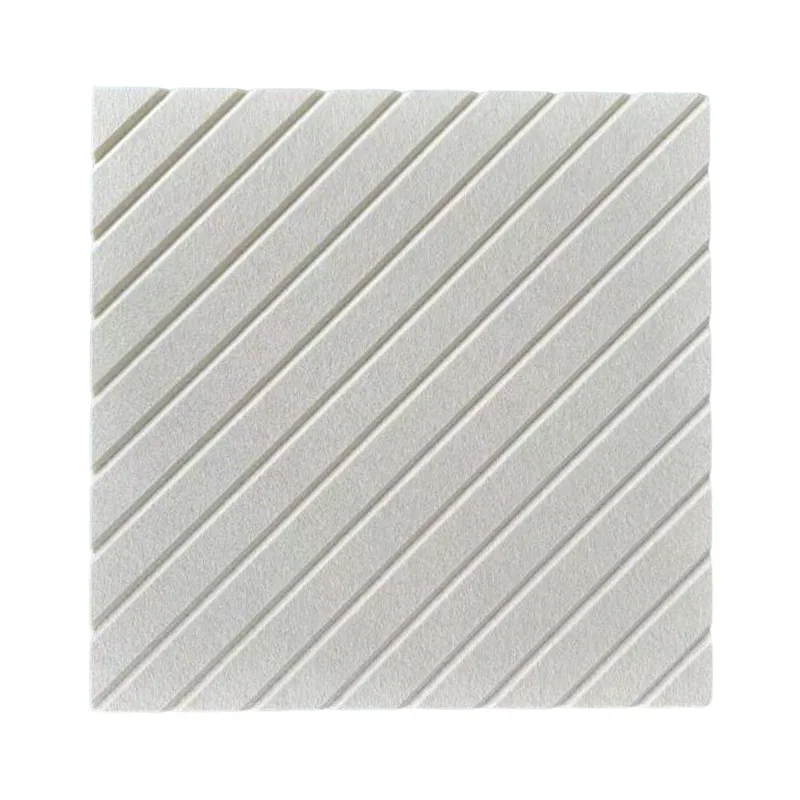 Наші високоякісні акустичні панелі з ПЕТ-повсті з V-подібним вирізом бежевого кольору використовують 100% поліефірне волокно в якості основного матеріалу з ніжною текстурою V-вирізу на поверхні, м’якою та приємною на дотик. Внутрішня частина наповнена дрібними мікропорами, які ефективно вловлюють звук при ударі, запобігаючи відбиванню та реверберації. Це не тільки усуває луну, але й покращує естетику стіни завдяки універсальному бежевому кольорі, гарантуючи, що зменшення шуму не суперечить стилю вашого декору – практично та красиво!